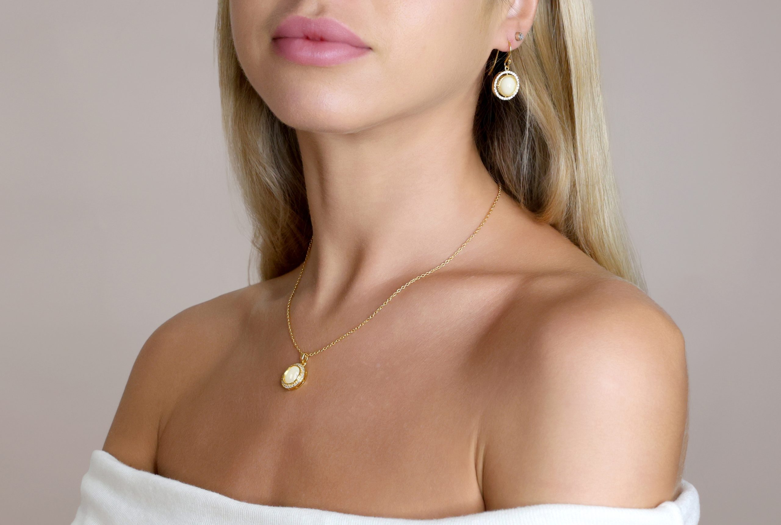 Además, puedes elegir el color de la piedra para que sea completamente a tu gusto: el tono natural de la leche, un delicado tinte blanco o un sofisticado efecto perla.
